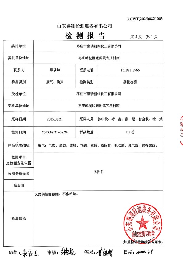 2025年泰瑞精細(xì)化工有限公司土壤檢測(cè)報(bào)告