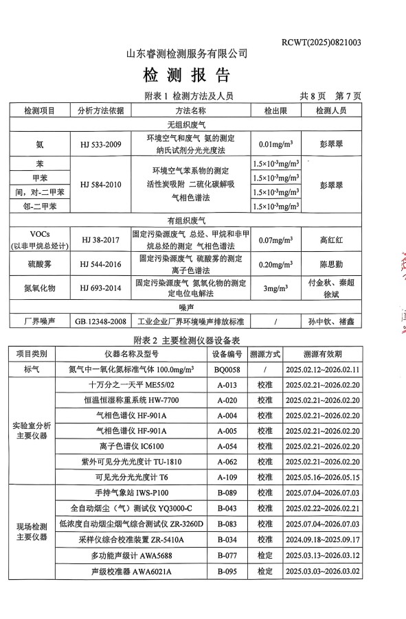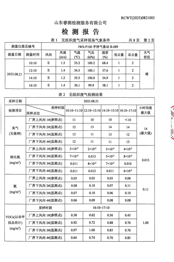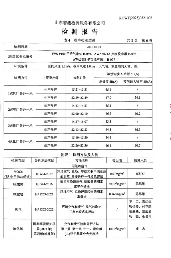 2025年8月廢氣、噪聲檢測(cè)報(bào)告